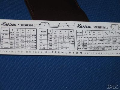 “Larssen - Stahlwände / Stahlpfähle” (rückseitiger Aufdruck). Leider ohne Anleitung aber mit dunkelbrauner Lederhülle.
